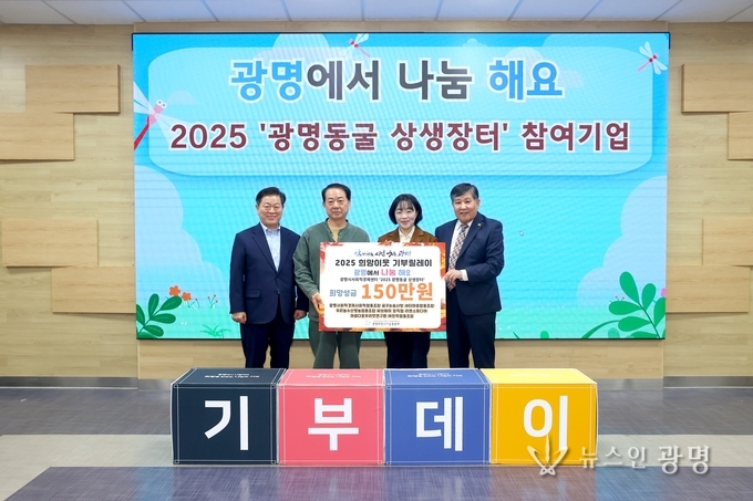 1024(), 2025 광명사회적경제사회적협동조합 광명동굴 상생장터기업들은 광명시사회복지협의회(회장 이상재) 광명희망나기운동사업(이하 광명희망나기운동본부)에 수익금 150만원을 전달했다.