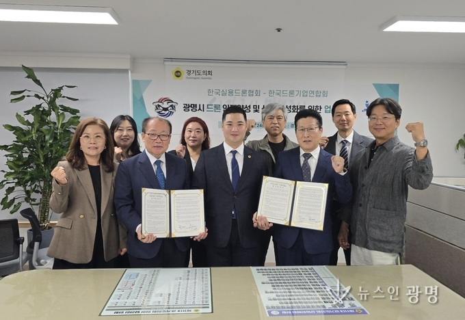 경기도의회 최민 의원(더불어민주당, 광명2)24일 경기도의회 광명상담소에서 한국실용드론협회(회장 유근식)와 한국드론기업연합회(회장 이종경)간 업무협약식을 주관하고, 드론 산업의 활성화를 위한 지역 차원의 협력 방안을 모색했다.