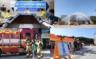 - 광명시, 광명시민체육관에서 ‘2025 재난대응 안전한국훈련’ 개최 - 광명시 비롯한 관내 10개 기관, 250여 명·차량 33대 참여 - 화재 등 복합 재난상황 가정, 유관기관 합동으로 숙련된 재난 대응능력 선보여 광명시(시장 박승원)가 27일 오후 광명시민체육관에서 ‘2025 재난대응 안전한국훈련’을 실시해 실전 같은 훈련으로 재난 대응 역량을 점검했다. 이번 훈련은 예측할 수 없는 복합재난 상황에 대비해 기관 간 공조체계와 현장 대응능력을 강화하기 위해 마련했다. 이날 훈련에는 광명시를 비롯해 광명소방서, 광명경찰서, 대한적십자사 경기도지사, 한국전력공사 광명지사, 한국전기안전공사 경기서부지사 등 10개 기관·단체에서 250여 명의 인원과 차량 33대가 참여해 대규모 통합훈련으로 진행했다. 훈련은 광명시민체육관 전광판에서 발생한 전기화재가 내부 식당으로 번지며 가스 폭발과 상층부 붕괴로 이어지는 복합재난 상황을 가정해 실시했다. 각 기관은 화재 진압, 인명구조, 교통 통제, 응급 복구 등 단계별 상황에 신속히 대응하며 실전과 같은 협력체계를 점검했다. 시청 재난종합상황실에서 훈련 상황을 총괄한 박승원 광명시장은 “예측할 수 없는 대형 재난에 대비하는