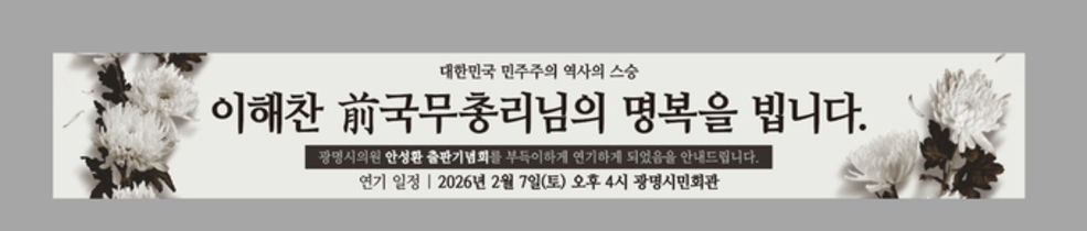 광명시장 출마 행보 본격화…“대한민국 새 판은 지방정부 혁신부터” 광명의 판을 바꿀 5대 약속 ‘도시혁신 프로젝트’ 시동 광명의 판을 뒤집는 도시혁신 프로젝트가 시작됐다. 광명시장 출마를 준비 중인 안성환 광명시의원이 오는 27일 오후 6시 광명시민회관에서 출판기념회 <판 : 안성환의 도시혁신 프로젝트>(이하 ‘판’)을 개최한다. 이를 계기로 광명시장 선거를 향한 안성환 의원의 행보도 본격화될 전망이다. <판>은 광명시의회 의장 출신이자 3선 의원인 안성환의 철학과 도시 비전을 집약한 책이다. 저자는 12·3 계엄과 탄핵 정국을 거쳐 새롭게 출범한 이재명 정부의 성공을 위해서는 지방정부의 근본적 혁신이 선행돼야 한다고 강조한다. 그는 “정체되고 무능한 지방정부로는 국가 정책이 민생에 닿을 수 없다”며, “역동적이고 유능한 리더십으로 지방정부의 판부터 바꿔야 한다”고 역설한다. 뜬구름 잡는 계획이 아니라 시민의 일상을 바꾸는 실천과 성과가 중요하다는 의미다. <판>은 ‘대한민국의 새 판을 짜다’, ‘광명의 판을 바꾸는 도시혁신 프로젝트’ 등 총 10개 장으로 구성되어 있다. 특히 도시혁신 전략으로 ▲안전의 판을 세우다 ▲교통의