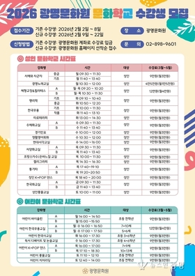 광명문화원 문화학교 봄학기(3~5월) 수강생 모집