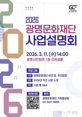 (재)광명문화재단(대표이사 송은영)은 설 명절을 맞아 오는 2월 18일(수) 13시에 광명 인생플러스센터 앞 원형 광장과 1층 로비에서‘설레는 설날’ 행사를 개최한다고 밝혔다. □ 이번 행사는 ▲관내 예술가 공연 ▲민속 놀이 체험 ▲ 참여형 체험 등 온 가족이 함께 즐길 수 있는 다양한 프로그램으로 구성됐다. 광명시립전통예술단의 농악 공연을 시작으로 가수 허지영과 광명생활악기오케스트라의 공연까지 풍성한 음악 무대를 선보일 예정이다. □ 또한 전통 민속 놀이 체험과 댕기 키링 만들기, 자개 갓 키링 만들기 등 공예 체험을 통해 광명 시민들이 명절의 정취를 느끼며 보다 풍요로운 설을 보낼 수 있도록 기획했다. 특히 광명시 관내 예술가와 광명시 사회적경제과 「굿모닝광명」 상품 홍보 등 지역 상점들도 참여해 함께 만들어가는 행사라는 점에서 의미를 더한다. □ 광명문화재단 관계자는 “설 연휴 마지막 날에 마련한 이번 행사를 통해 시민 모두가 함께 웃고 즐기며 따뜻한 명절을 보내길 바란다”라고 전했다. □ 이번 행사는 시민 누구나 무료로 참여할 수 있으며, 자세한 내용은 광명문화재단 홈페이지www.gmcf.or.kr)에서 확인할 수 있다.