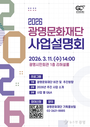 (재)광명문화재단(대표이사 송은영)은 오는 3월 14일 오후 5시 광명시민회관 공연장에서 한국 포크 음악을 대표하는 정태춘·박은옥의 문학 콘서트 <나의 시, 나의 노래>를 개최한다. □ 이번 공연은 봄 시즌을 맞아 시민의 문화 향유 기회를 넓히고 세대 간의 정서적 공감대를 형성하기 위해 마련됐다. 특히 음악과 문학, 시각예술이 하나로 어우러진 ‘문학 콘서트’ 형식을 도입하여, 단순한 음악 공연과는 차별화된 입체적인 콘텐츠를 선보일 예정이다. □ 대한민국 대표 포크 뮤지션인 정태춘과 박은옥은 데뷔 이후 시대와 인간의 삶을 관통하는 서정성과 날카로운 사회적 메시지를 결합한 독보적인 작품 세계를 구축해 왔다. 이번 무대에서는 ‘시인의 마을’, ‘떠나가는 배’ 등 대중의 사랑을 받아온 대표곡들과 함께 깊이 있는 레퍼토리를 선보인다. □ 특히 아티스트와 오랜 기간 호흡을 맞춰온 밴드의 풍성한 라이브 연주와 시 낭송, 그리고 감각적인 시각 콘텐츠가 조화를 이루며 관객들에게 깊은 울림을 선사할 것으로 기대를 모으고 있다. □ 광명문화재단 관계자는 “작품성과 대중성을 겸비한 이번 공연을 통해 공공 공연장으로서의 기획 경쟁력을 강화하고, 시민들에게 수준 높은 문화