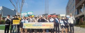 - 유관기관 및 협력단체 합동 어린이보호구역 통학로 안전 지도 - 횡단보도 통행 ‘3원칙’ 및 ‘무단횡단 금지’ 등 교통 안전 캠페인 실시 광명경찰서(서장 이두호)는 4월 14일 광명동 소재 광명초등학교에서 어린이 교통사고 예방을 위한「개학기 어린이보호구역 교통안전 합동 캠페인」을 실시 하였다. 이날 캠페인에는 시청 및 교육청, 녹색어머니회 등 협력단체와 함께 등교하는 학생들을 대상으로 횡단보도 통행 3원칙 ‘서다, 보다, 걷다’와 ‘무단횡단 절대 금지’ 등 교통안전 수칙을 안내하는데 중점을 두었으며 학부모 상대 △ 우회전 시 일시정지 생활화 △ 약물운전 예방수칙 등 최근 이슈화 되고 있는 교통안전 테마 홍보 활동도 함께 전개 하였다. 또한, 어린이 보호구역 내 시설물 운영 상태 및 주변 위험 요소에 대한 점검을 실시하며 안전한 통학로 조성을 위해 다양한 현장 의견들을 청취하는 시간을 가졌다 앞으로도 광명경찰서는 관내 초등학교 어린이보호구역 내 지속적인 교통안전 홍보와 단속을 병행하여 어린이가 안심하고 다닐 수 있는 교통환경 조성에 힘쓸 예정이다.