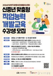 - 중장년 생애설계, AI 데이터 교육 등 5개 실무 중심 과정 운영 - 2월 13일까지 접수… 50~64세 광명시민 대상 총 94명 선발 광명시(시장 박승원) 인생플러스센터는 신중년의 취업 경쟁력을 높이고 성공적인 인생 재도약을 지원하기 위해 오는 13일까지 ‘2026년 상반기 신중년 맞춤형 직업능력개발교육과정’ 수강생을 모집한다. 이번 교육은 단순한 이론 전달을 넘어, 현장에서 즉시 활용할 수 있는 실무 중심 프로그램으로 구성했다. 특히 시장 수요를 반영한 맞춤형 직무교육으로 교육 수료가 실제 일자리로 연계될 수 있도록 설계한 것이 특징이다. 모집 과정은 총 5개로 ▲중장년 생애설계상담사 양성과정 ▲브랜드 메이커 프로젝트(굿즈로 경험하는 창업) ▲생활가전 청소마스터 양성과정 ▲시니어 AI 데이터&워크플로우 교육 ▲약국사무원 실무교육과정이며, 취업·창업·신기술 분야를 아우르는 체감형 교육으로 구성했다. 교육은 오는 3월부터 5월까지 과정별로 운영한다. 지원 자격은 공고일 기준 주민등록상 광명시에 거주하는 신중년(50세~64세)으로, 관련 분야에 대한 취업 또는 창업 의지가 확고한 시민이면 누구나 신청할 수 있다. 박승원 광명시장은 “이번 교육은 신중